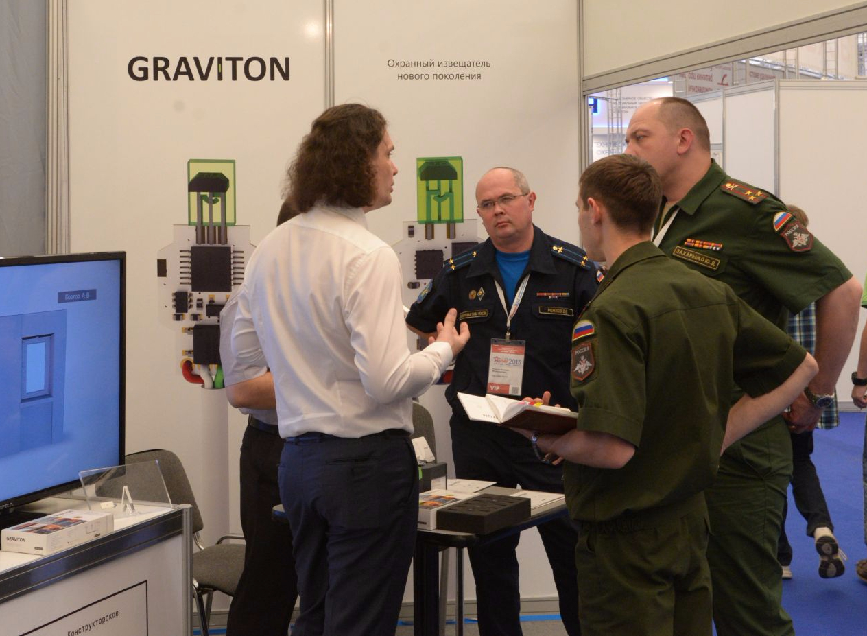 На первом Международном Военно-техническом Форуме Армия-2015 был представлен охранный сенсор GRAVITON. Форум оказался выдающимся событием в жизни российского общества и Вооруженных сил Российской Федерации.Он стал рекордным как по масштабу, так и по насыщенности научно-деловой и демонстрационной программ, в рамках которых было проведено более 90 круглых столов и представлено свыше 7 тысяч экземпляров вооружения и военной техники.